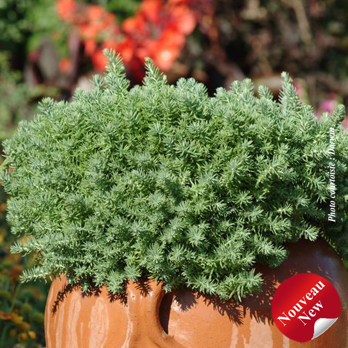 Couvre-sol résistant au feuillage vert bleuté. Floraison jaune. Facile d'entretien et tolérent à la sècheresse.