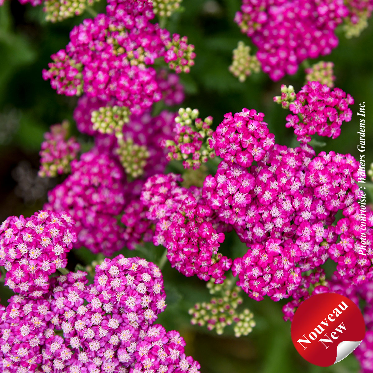 Achillée robuste au feuillage fin et larges ombelles colorées, facile et attirant les pollinisateurs.