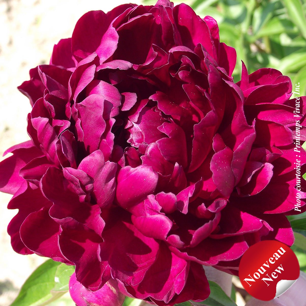 Fleurs doubles, parfumées, rouge ruby, qui prennent une riche teinte pourpre. Floraison hâtive. N'a pas besoin d'être tuteurée.