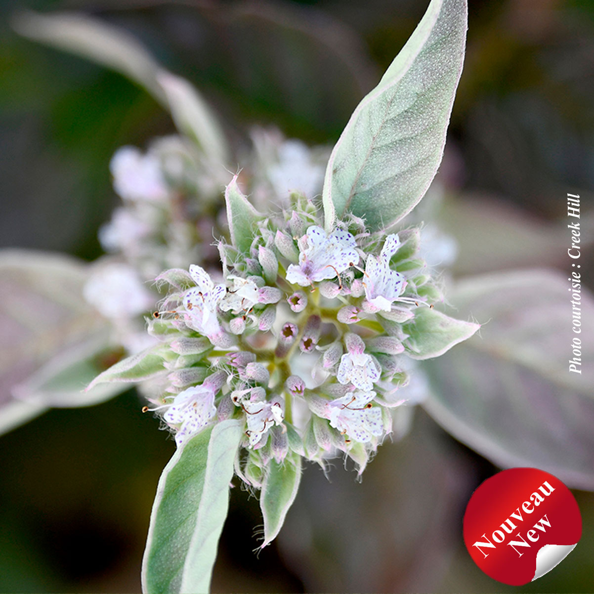 Ce parent de la menthe porte des bractées veloutées gris argenté surmontées de grappes de petites fleurs blanches ou lavande parfumées.